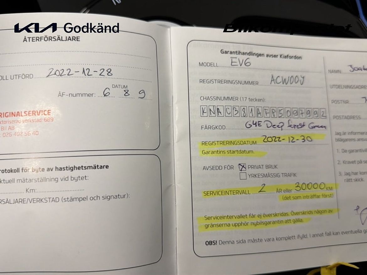 Uppgifter om bilen som handlaren kompletterat med.
