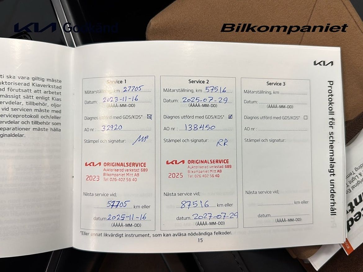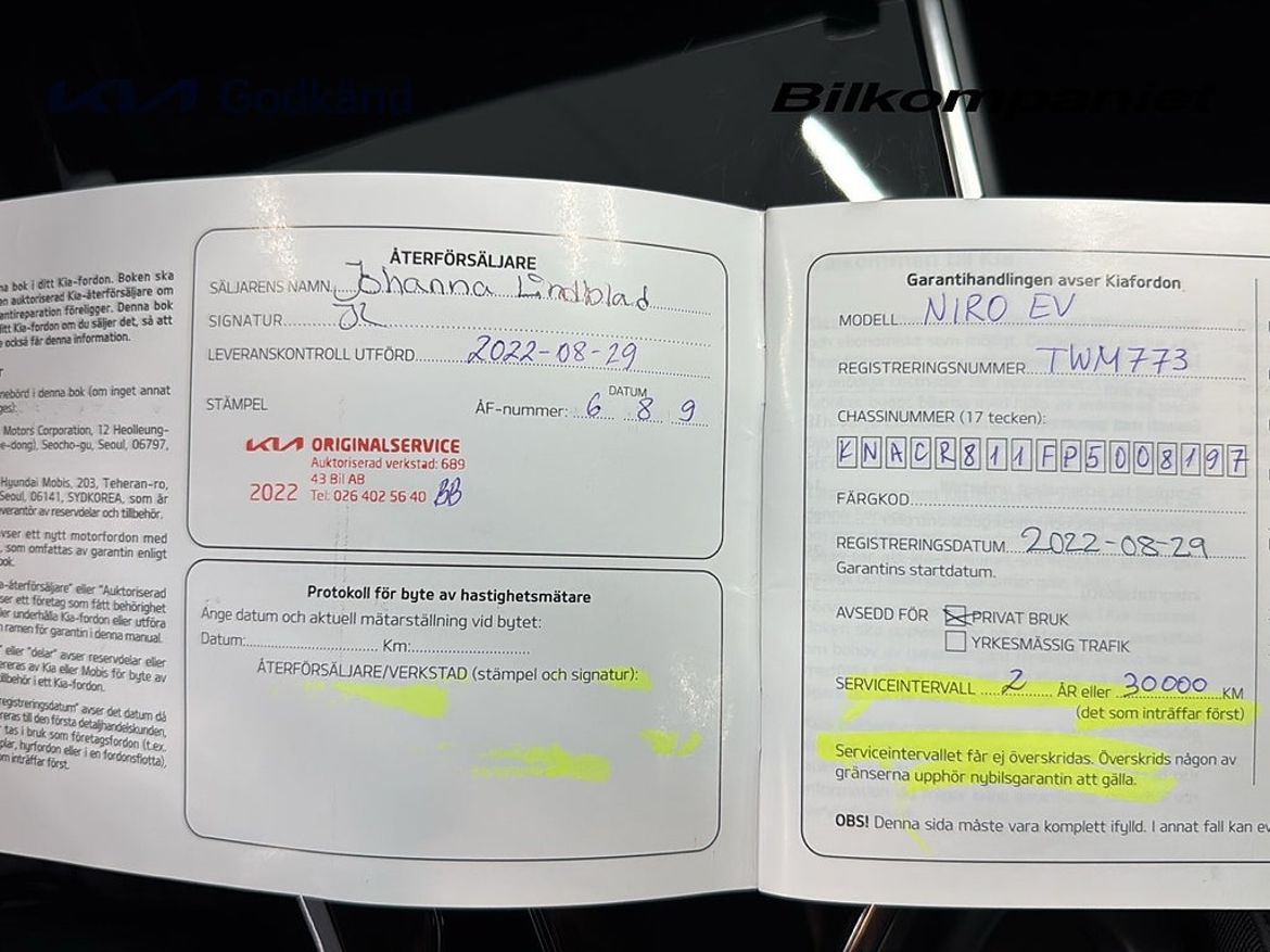 Uppgifter om bilen som handlaren kompletterat med.