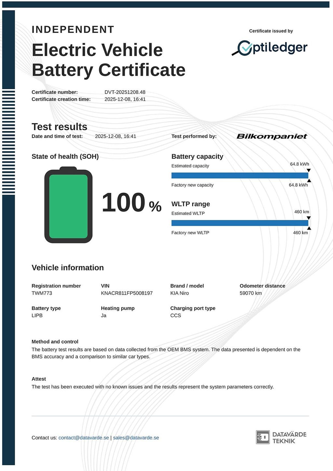 Information direkt från Transportstyrelsen och tillverkaren.