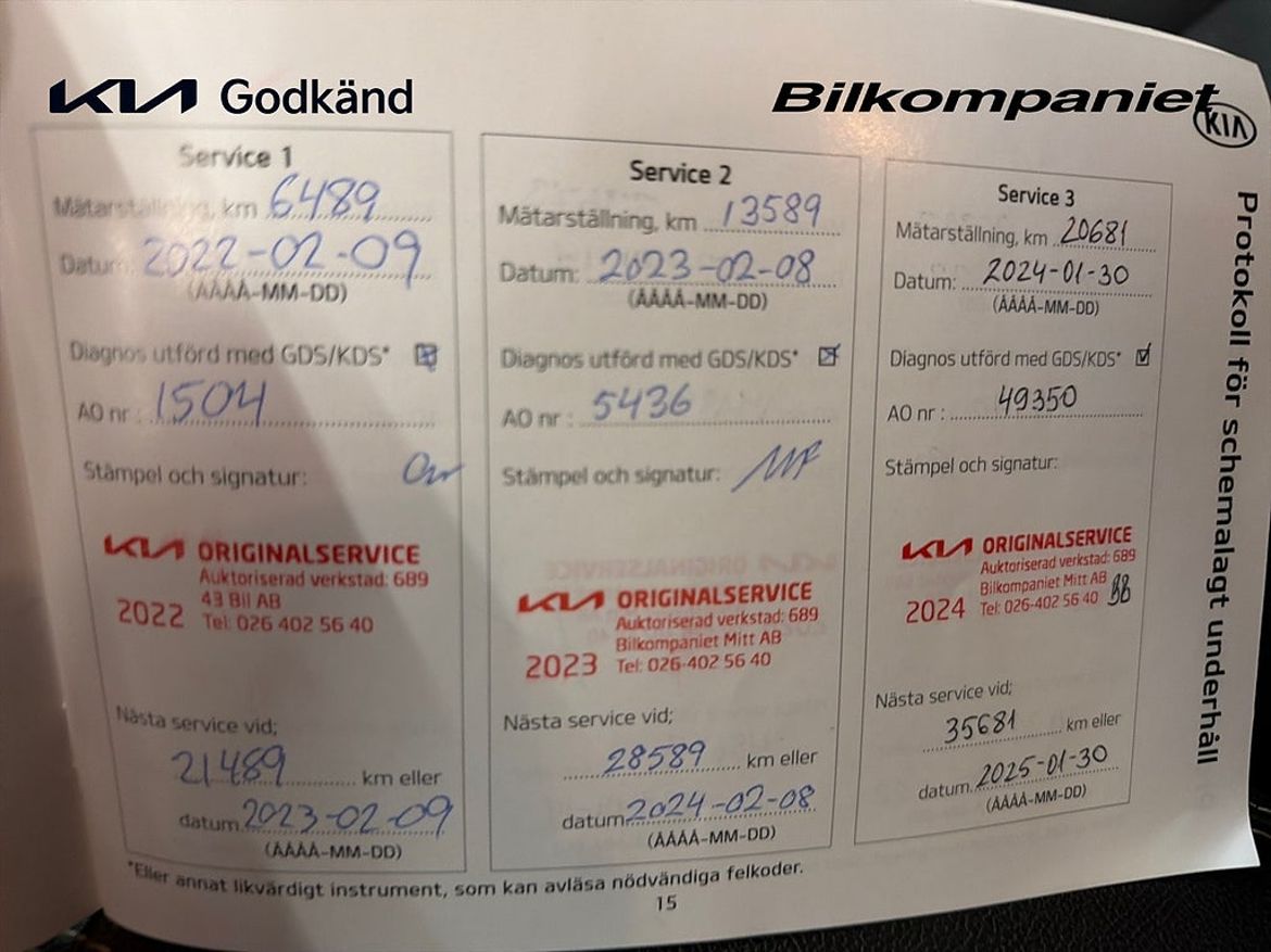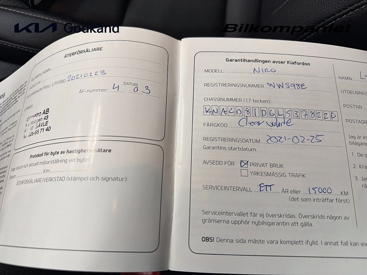 Uppgifter om bilen som handlaren kompletterat med.