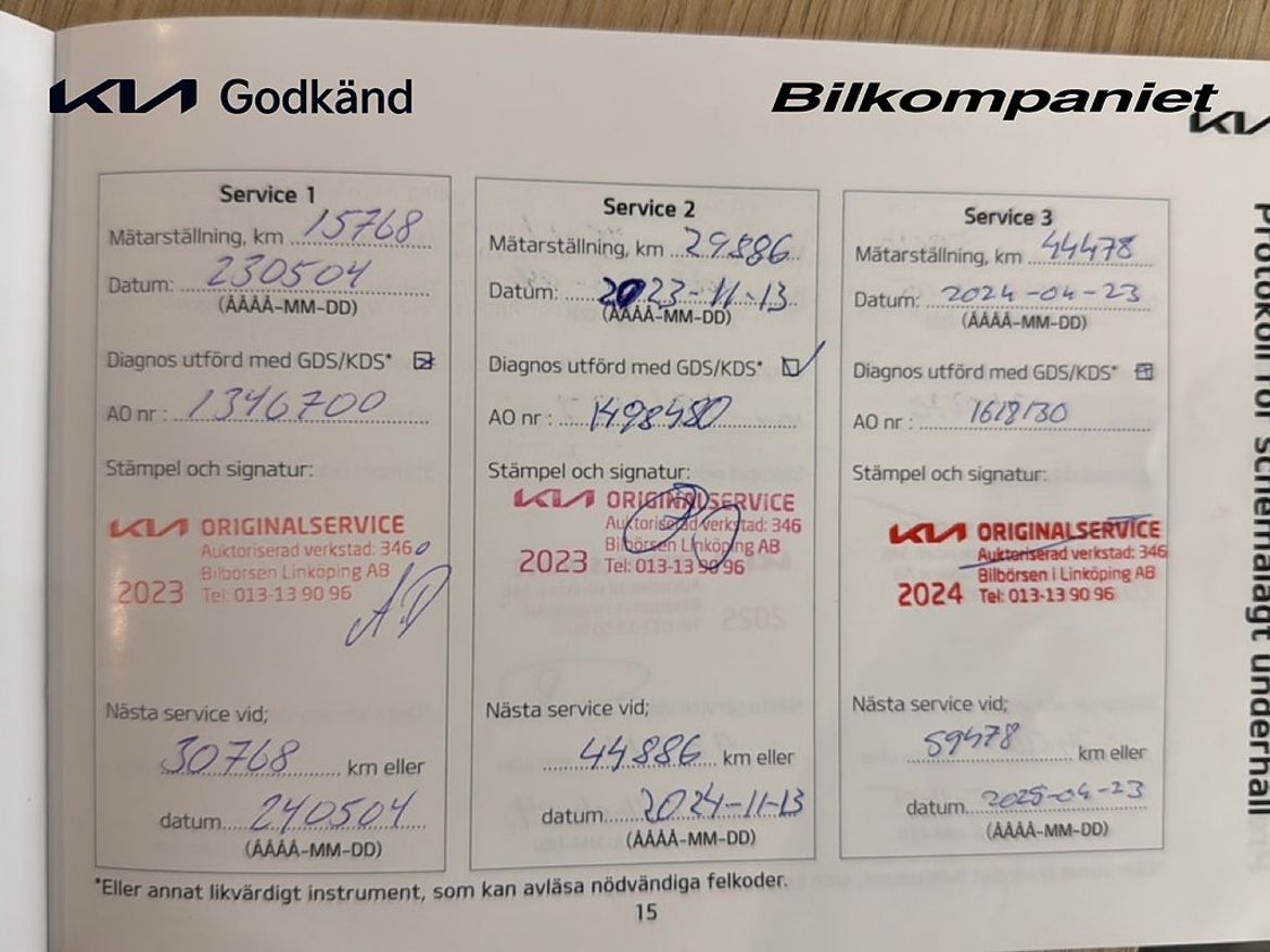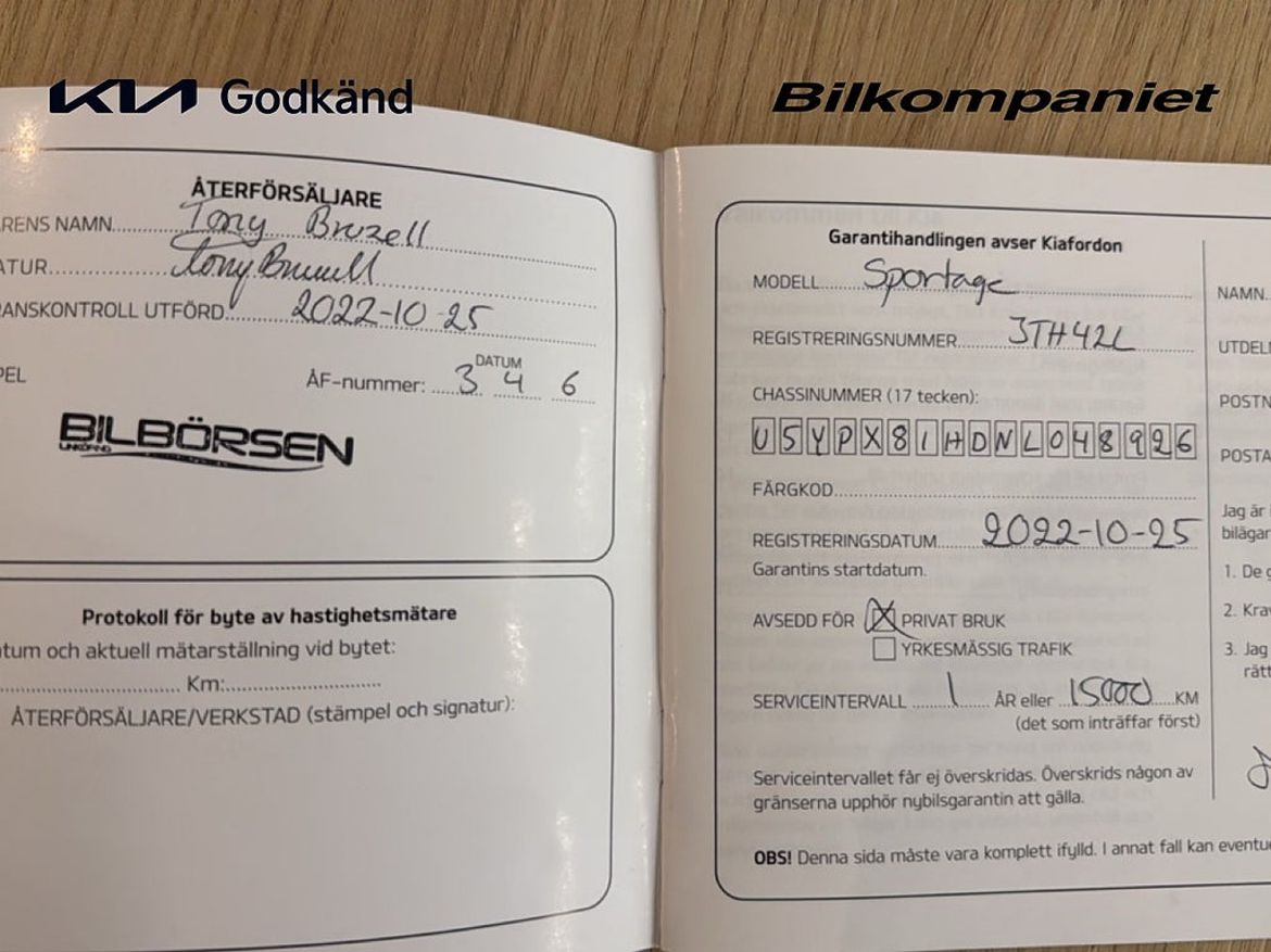 Uppgifter om bilen som handlaren kompletterat med.
